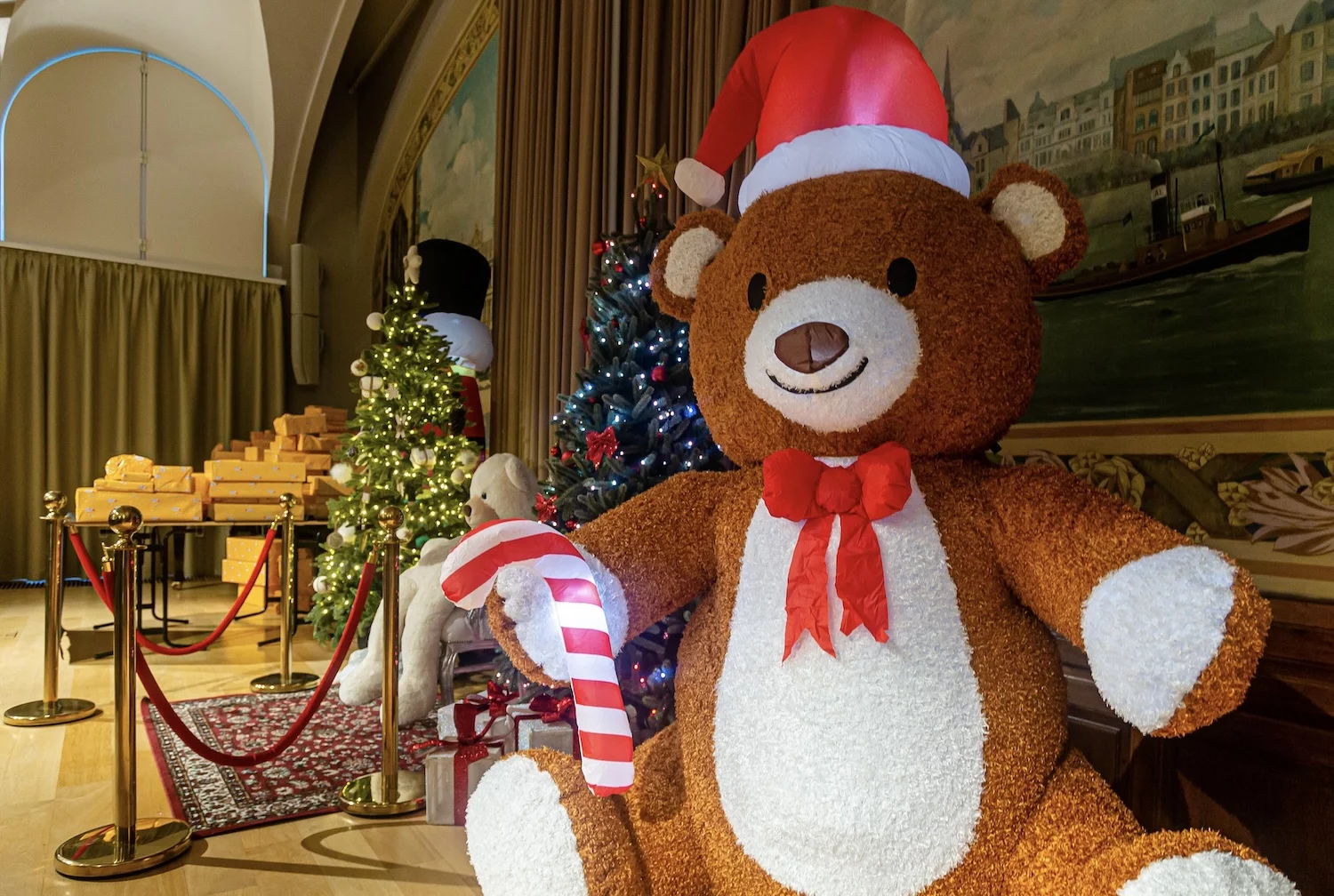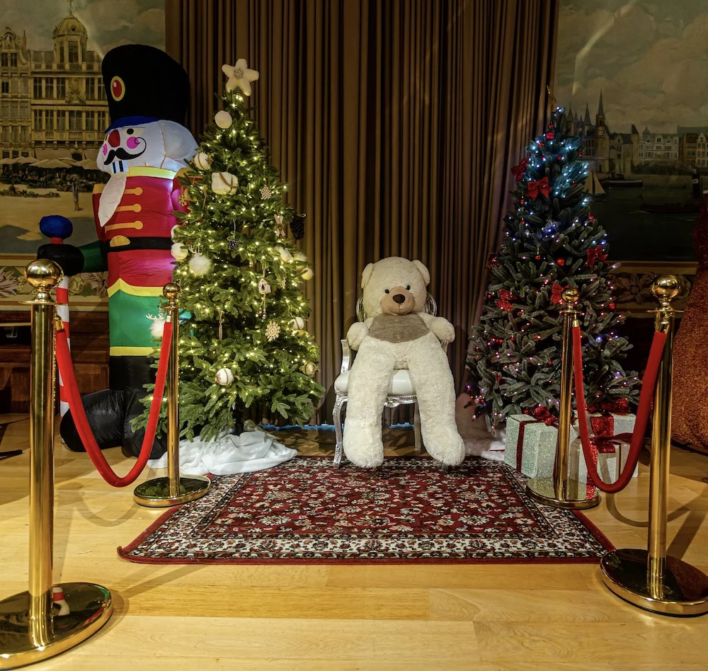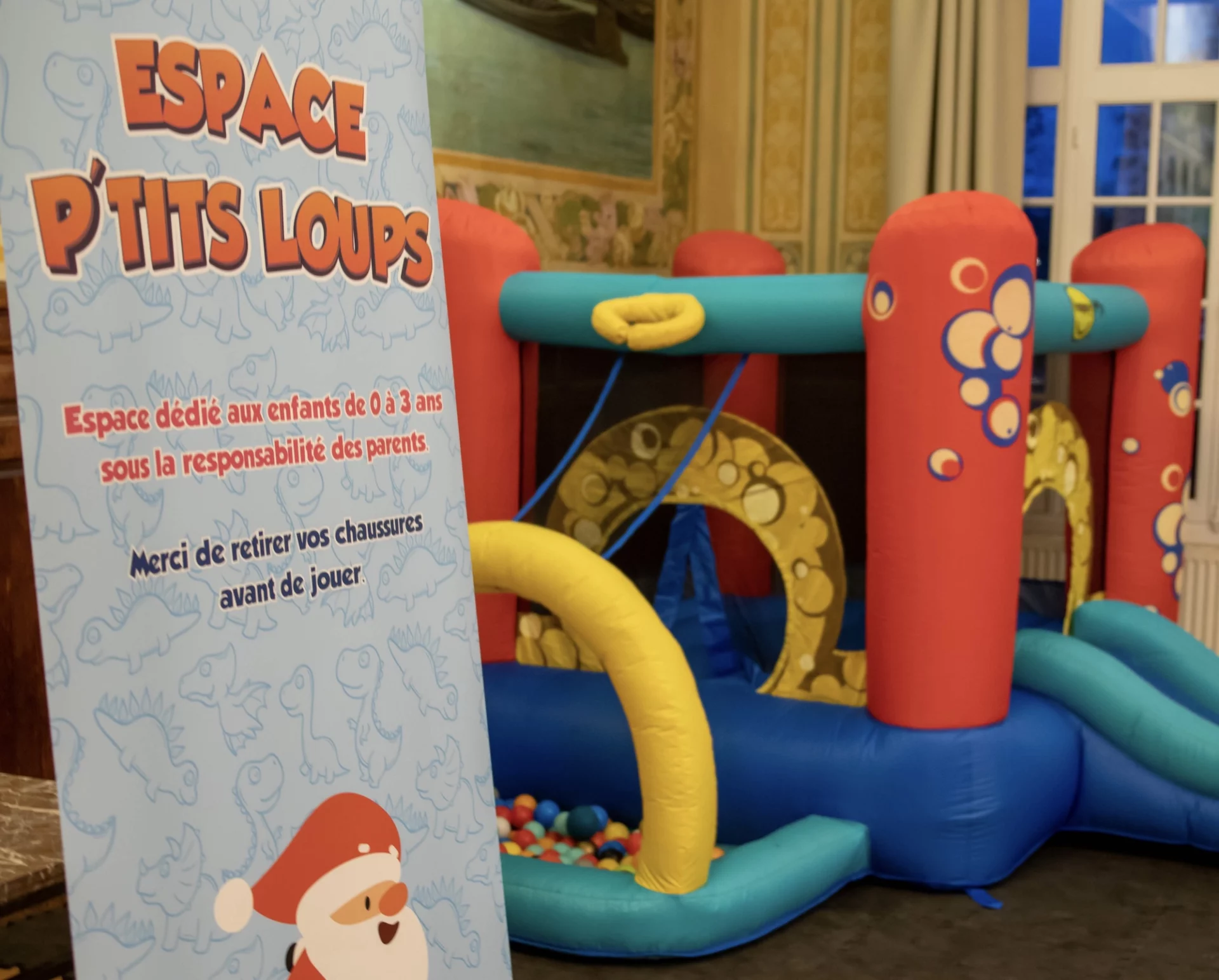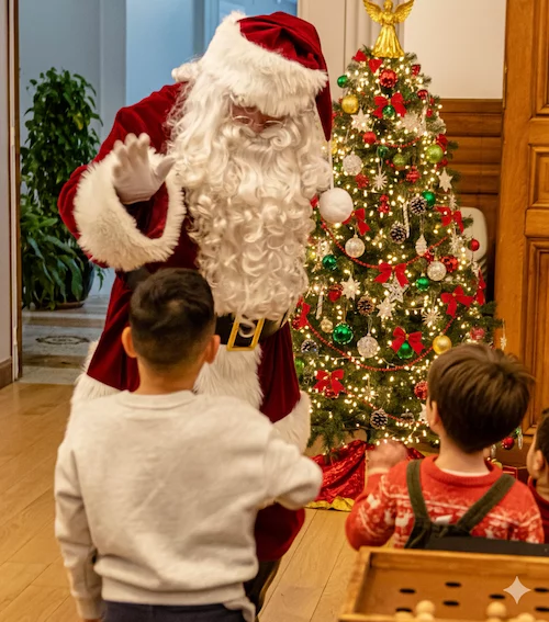 Puis, le temps s’est comme suspendu. Depuis un balcon surplombant l’assemblée, le Père Noël a fait son entrée, dominant la scène avec élégance avant de rejoindre les enfants. Il a ensuite distribué les cadeaux et pris le temps d’accueillir les familles dans son décor, pour des photos pleines de complicité et de souvenirs.