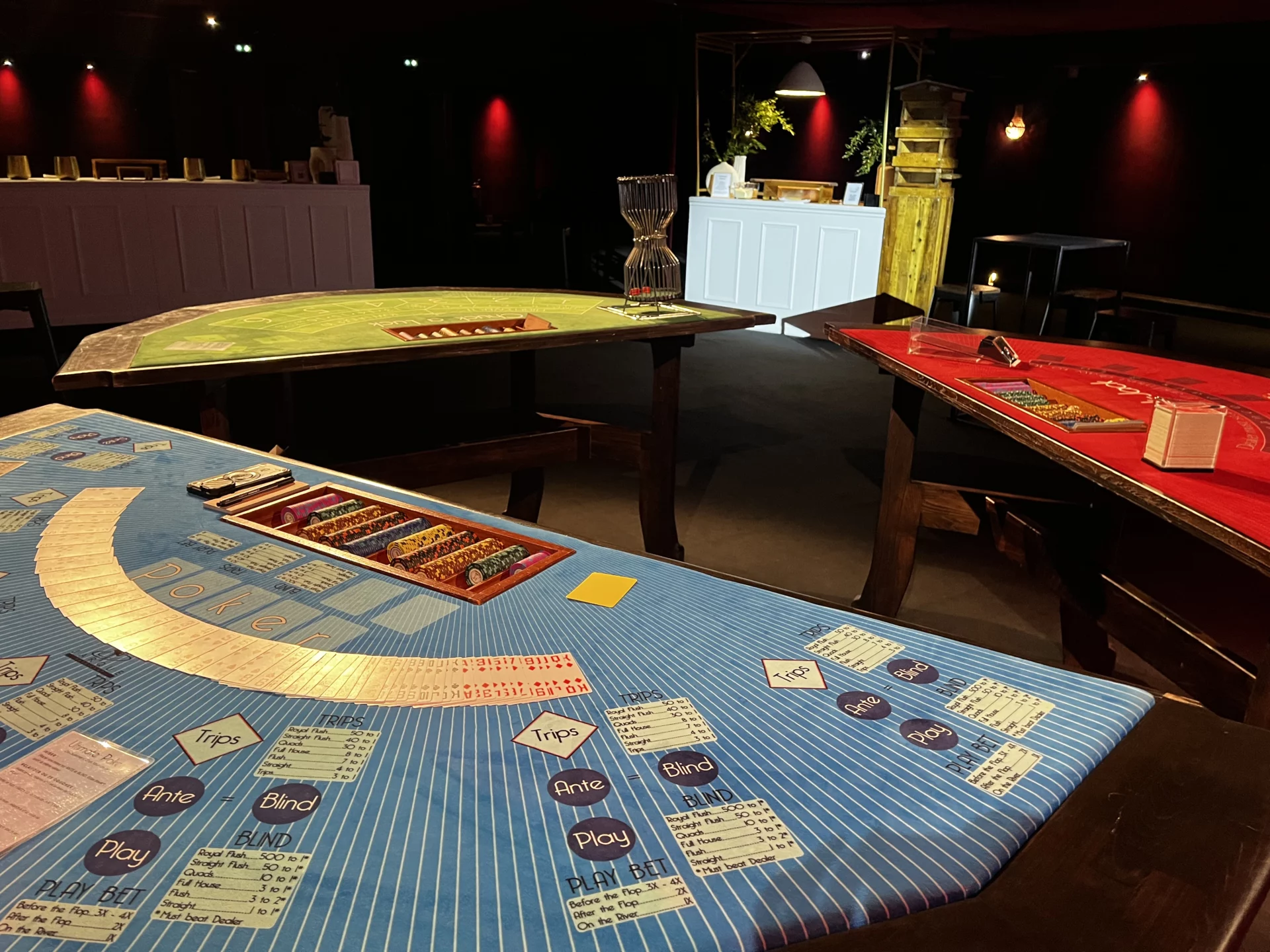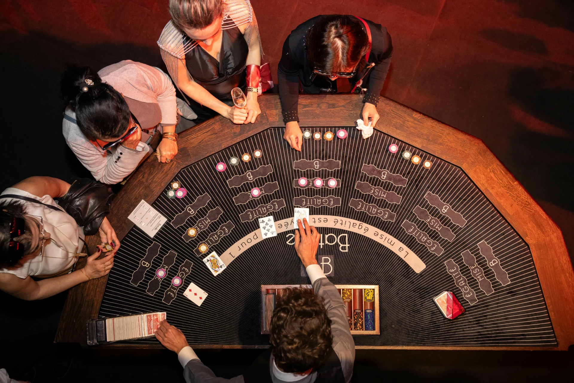 Une fois l’ensemble des invités réunis, les portes de la salle de spectacle se sont ouvertes sur le cœur de l’expérience : une ambiance casino grandeur nature. Poker, Black Jack, roulette, cash machine… pendant près de deux heures, les invités se rassemblent autour des tables, entre stratégie, adrénaline et esprit de compétition.